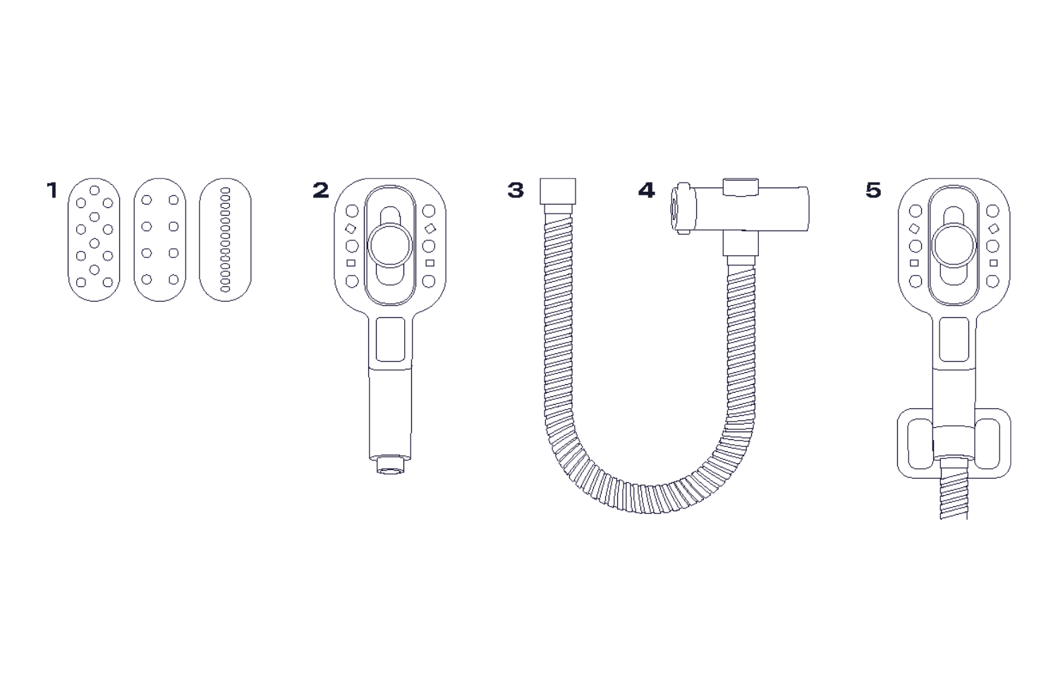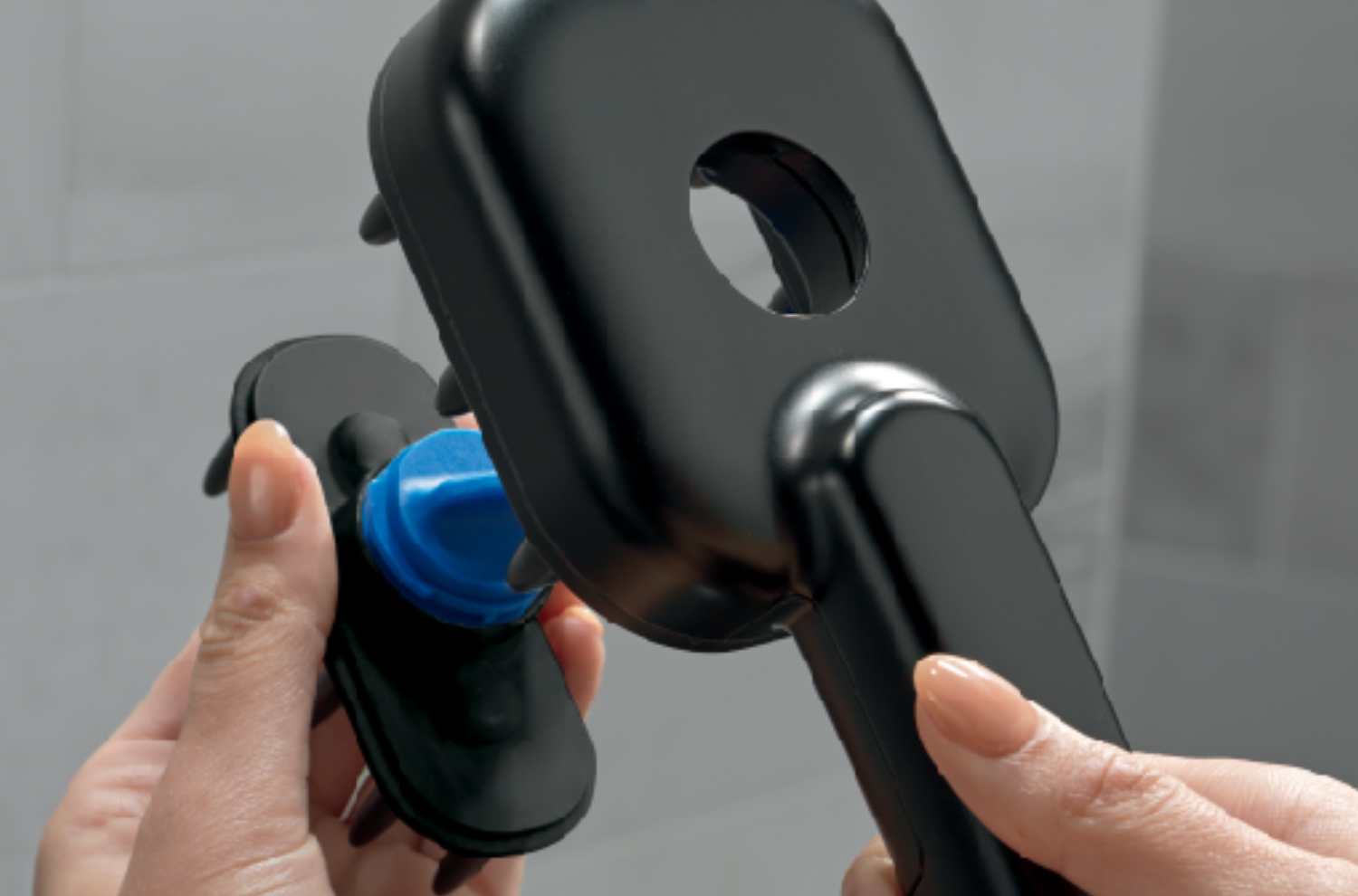 - "Anywhere" mount with two options – attach to wall or shower arm